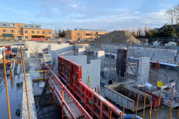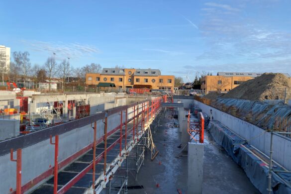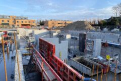 Eind 2024 werd de vloerplaat gestort en sindsdien vordert de bouw van de ondergrondse parking snel. De buitenwanden zijn bijna voltooid, en de komende weken werkt ARTES Group verder aan de binnenwanden en kolommen. Het is een indrukwekkend zicht om de evolutie van de werf van zo dichtbij te volgen.